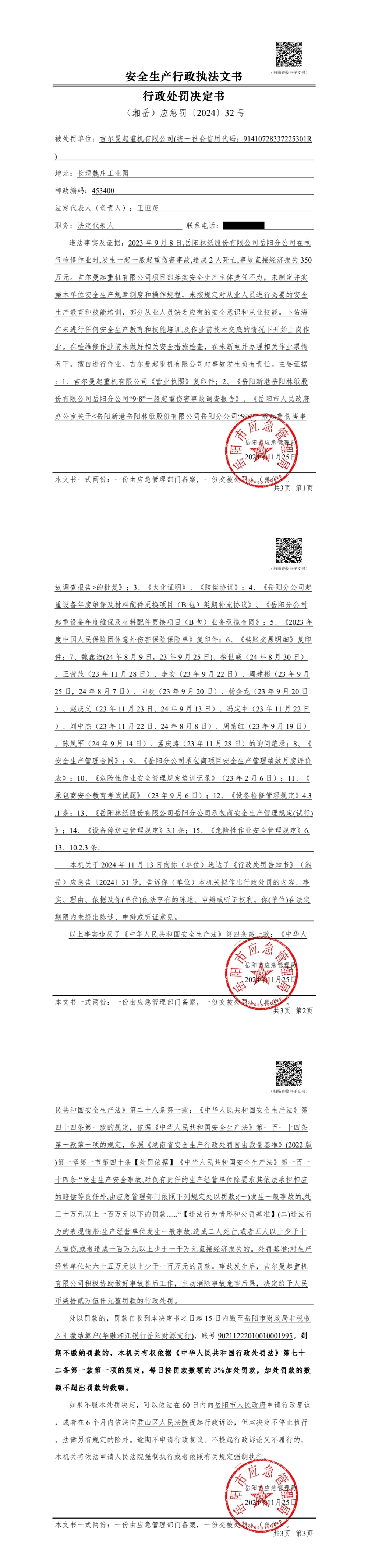 (湘岳)应急罚〔2024〕32 号吉尔曼公司