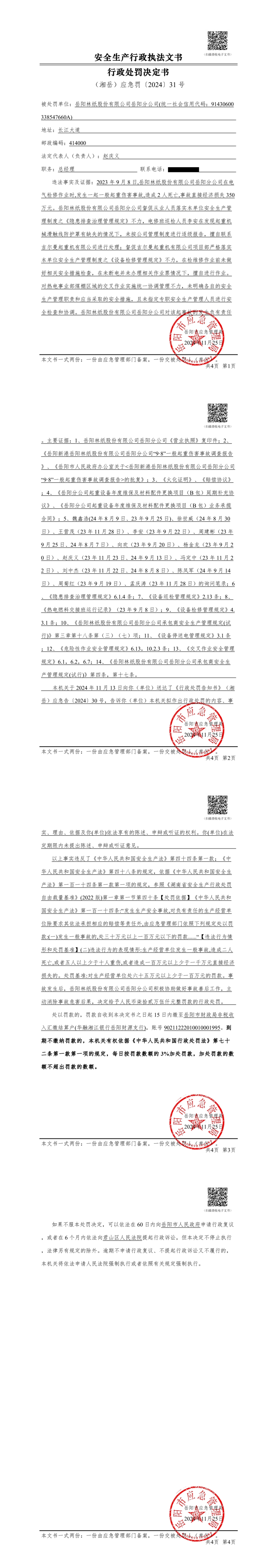 湘岳)应急罚〔2024〕31 号岳阳林纸