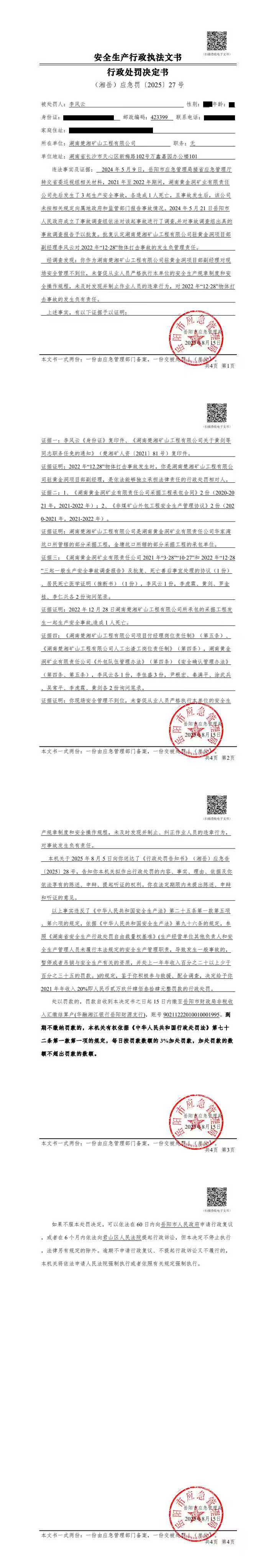 李风云处罚决定书