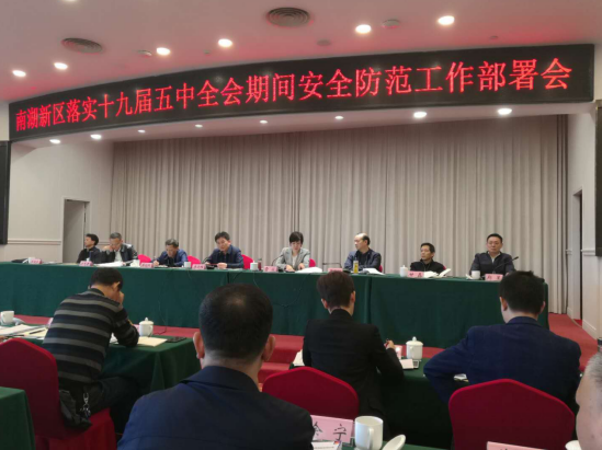 | 10月26日上午,南湖新区召开落实十九届五中全会期间安全防范工作动员部署会。区工委书记李运帷,区工委副书记、管委会主任雷欣出席会议并讲话,全体在家区级领导,区直单位、市直驻派单位负责人,各街道办事处、管理处班子成员,社区书记、主任参加。