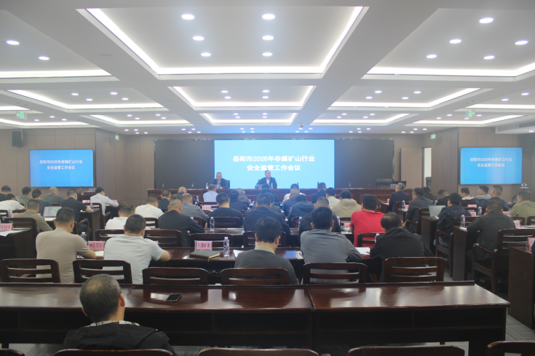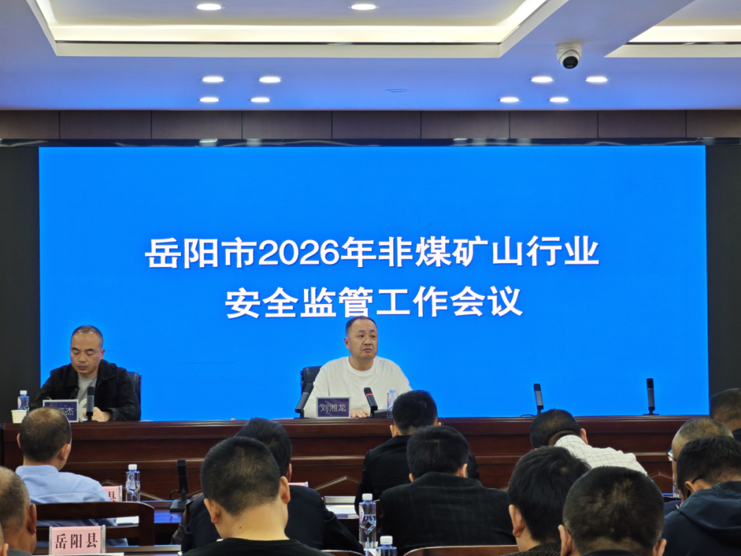 4月13日,岳阳市应急管理局组织召开2026年全市非煤矿山行业安全培训暨监管工作会议,深入学习贯彻习近平总书记关于安全生产的重要论述和指示批示精神,全面落实两办《意见》《八条硬措施》,扎实推进非煤矿山安全生产治本攻坚三年行动。市应急管理局党委委员、副局长刘湘龙出席会议并讲话,市应急管理局非煤矿山科全体人员,各县市应急管理局分管负责人、非煤矿山股主要负责人,以及全市各矿山企业主要负责人、分管安全负责人等70余人参加会议。