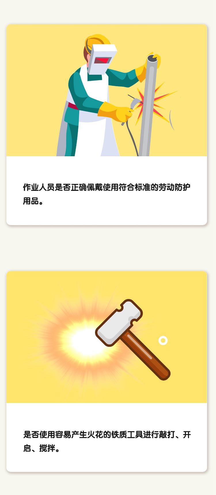 是否使用容易产生火花的铁质工具进行敲打、开启、搅拌。