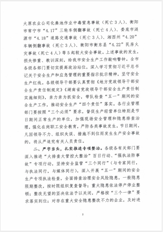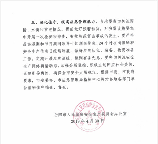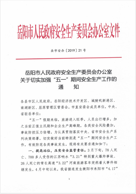 岳阳市人民政府安全生产委员会办公室关于切实加强“五一”期间安全生产工作的通知