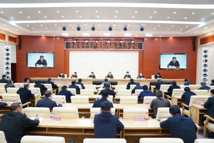 市委常委、常务副市长汪涛对统筹全市发展与安全作动员,市委常委、副市长李建华对安全生产工作部署,市委常委、市委秘书长谢胜出席,副市长李美云对城区防涝工作作部署,副市长陈阁辉对防汛抗旱工作作部署。会议以视频会议形式召开,各县市区设分会场。