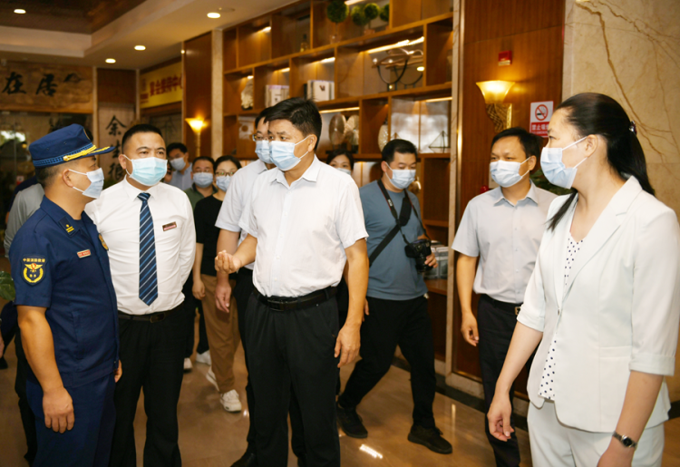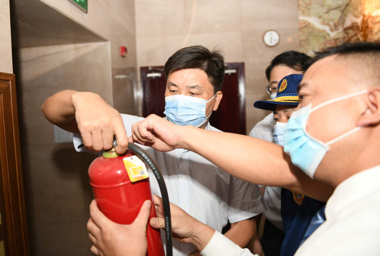 在华圣大酒店,曾平原详细检查高层建筑消防安全。他要求,要高度重视消防安全工作,加强日常巡查,全面排查消防隐患,进一步加强消防安全管理,加大对员工的消防安全知识培训,提高应急能力,坚决杜绝各类重大火灾事故发生。