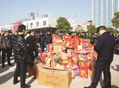 此次行动共有市区两级安监、城管、公安、消防、工商、质监及通海路管理处、中南市场物管公司负责人等部门单位200多人参加。行动现场,工作人员逐一进入烟花爆竹经营门店,对楼上楼下、房前房后和运输烟花爆竹的车辆都一一进行了地毯式排查,现场共清剿各类烟花爆竹4车,连同1月25日晚5时至23时岳阳经开区在中南市场清剿的烟花爆竹,共计清剿各类烟花爆竹1000余箱,并于当日下午由白石岭公安分局集中进行了销毁。